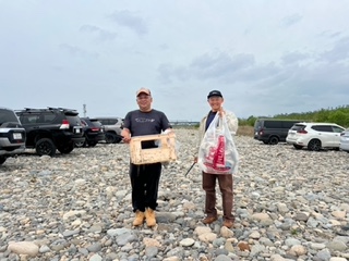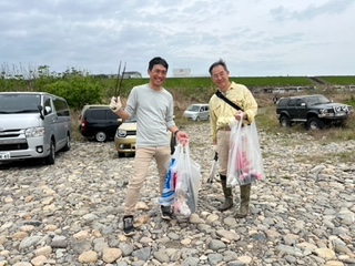 今年も多くの方にご参加いただきました。 みなさまのおかげで、合計/150kgほどのゴミを回収することができました。 公益法人日本釣振興会に協力をいただき、回収用ゴミ袋を用意、長良川の環境保全の一助になったものと自負いたしております。 今年も、パズデザインさま、バレーヒルさま、T-Craftさま、カリプソさま、BLACK CAT LUREさま、TULALAさま、 KINOEさま、PTARMIGANさま、タックルハウスさまに協賛いただき、協賛品をめぐってのジャンケン大会が大盛況。 そして今年も、岐阜市日野の昆虫ショップ・くわがた村(株式会社BREED)にも協賛いただき、オオクワガタとニジイロクワガタの争奪じゃんけんが盛り上がりました。 また、長良川下流漁業協同組合、岐阜市の方々には、今年も多大なご協力をいただきました。 ご参加・ご協賛・ご協力いただいたすべての方々に感謝し、厚くお礼を申し上げます。 本当にありがとうございました。 本当にありがとうございました。 清掃活動のあと、今年も京都大学大学院の佐藤先生より、サツキマスに関する研究の広告をいただきました。さらにサツキマスアングラーとのディスカッションも行われ、とても有意義なサツキマス研究発表会となりました。 また、最後には、長良川クリーン大作戦の主催者であるクラブナガラマスのメンバーによって、初めて開発、プロデュースされた長良川サツキマス専用ロッドがお披露目されて、試投会も行われました。長良川サツキマスを知り尽くしたアングラーが、長良川のサツキマスを釣るためだけに開発された唯一のロッドです。 ご興味のある方は、クラブナガラマス顧問・浅野まで、是非ご連絡ください。(cowboy.any@gmail.com) |